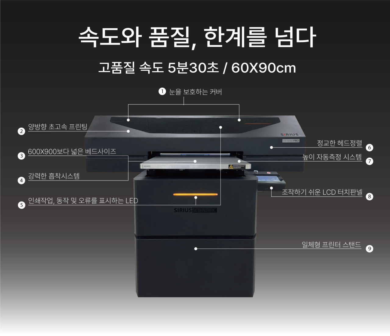 2400dpi의 해상도로 60cm X 90cm 전판인쇄를 5분만에!